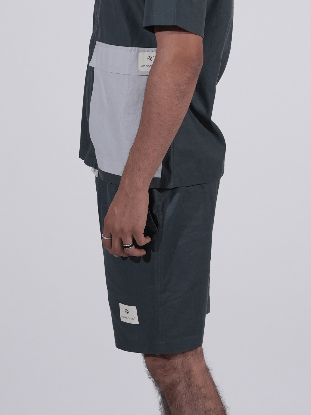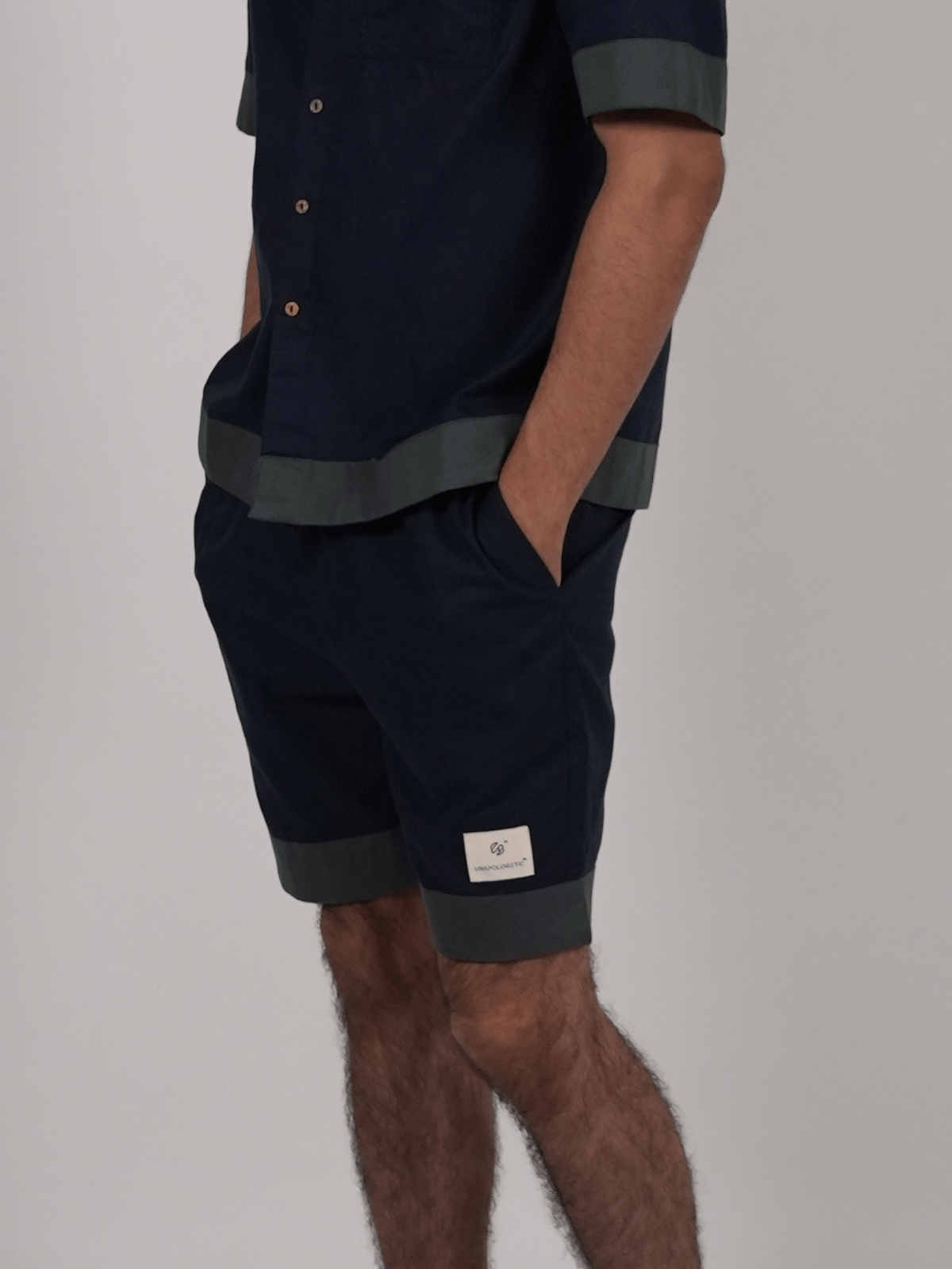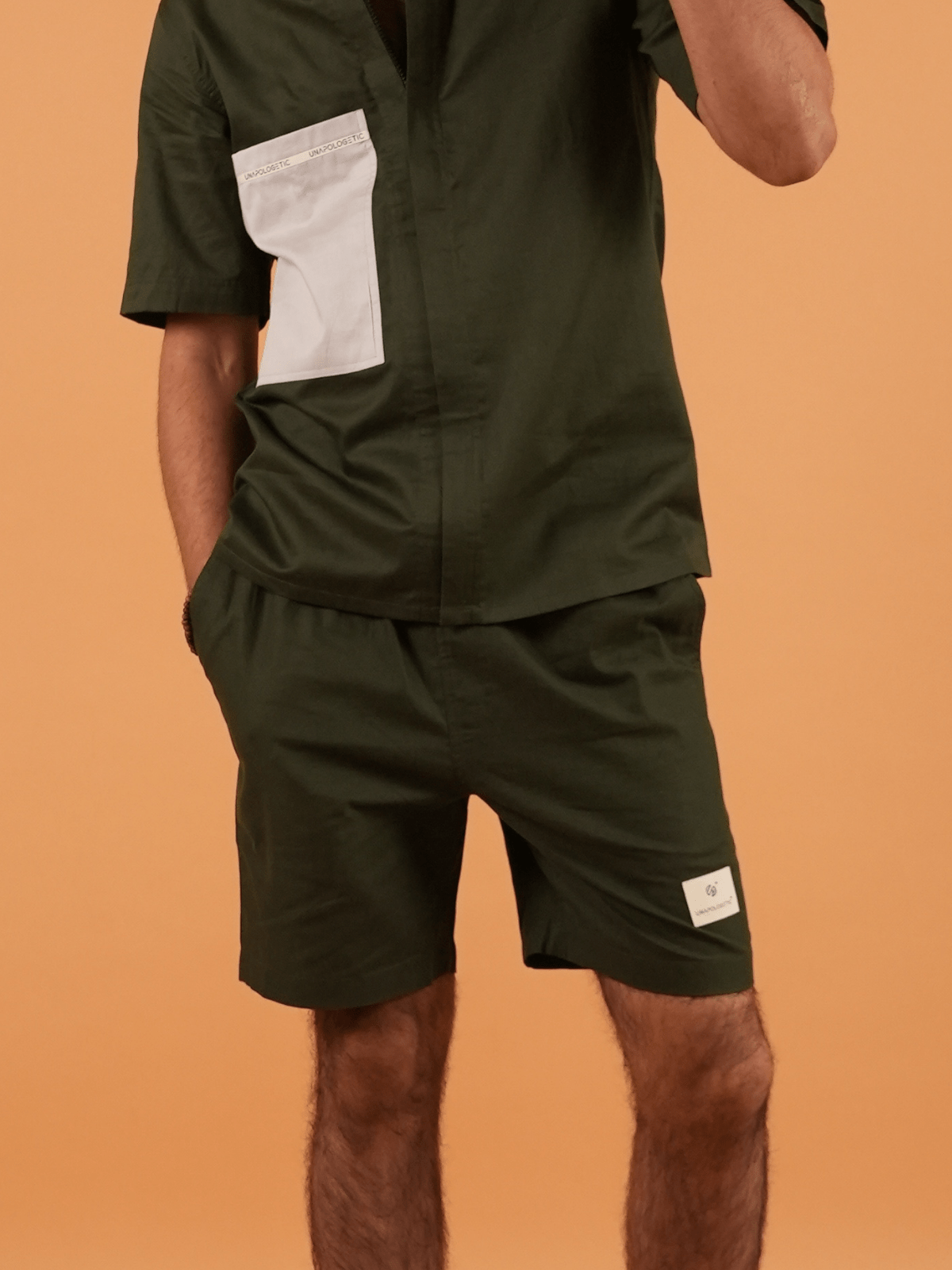 Knee-length drawstring shorts featuring practical side pockets, a functional back patch pocket, and signature Unapologetic branding Relaxed Fit -