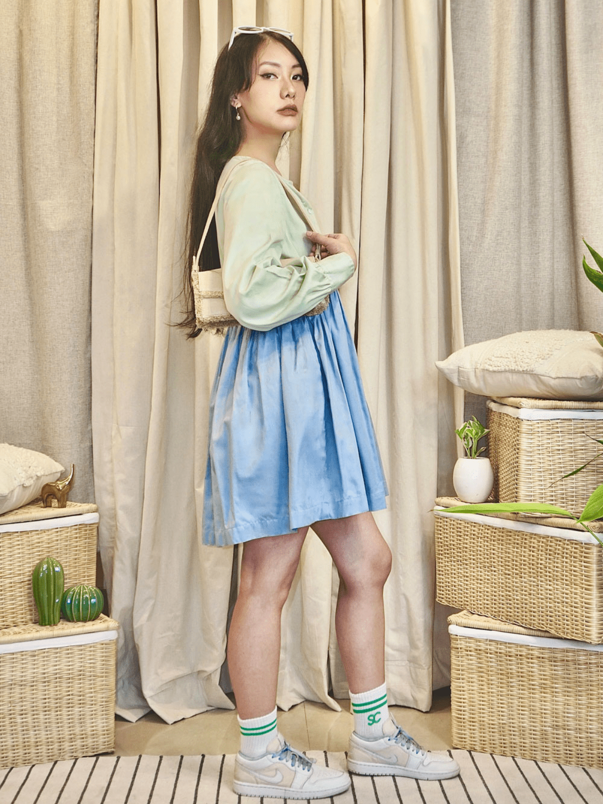 – Cut to a mid-thigh length for a playful, versatile silhouette.