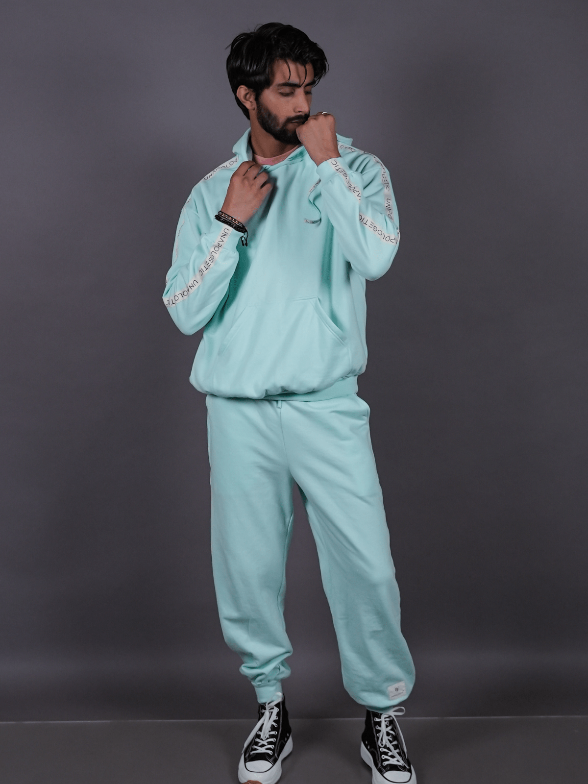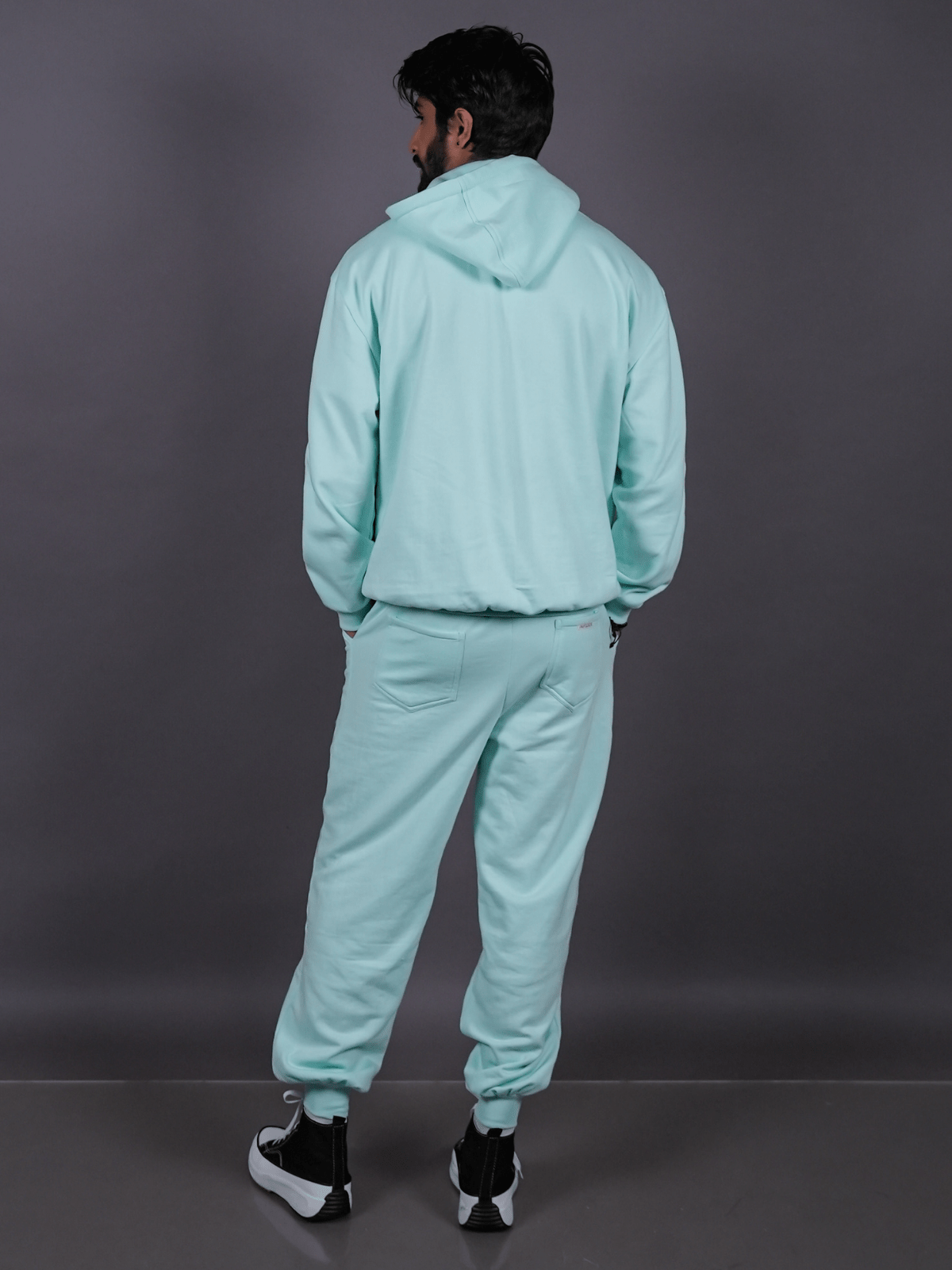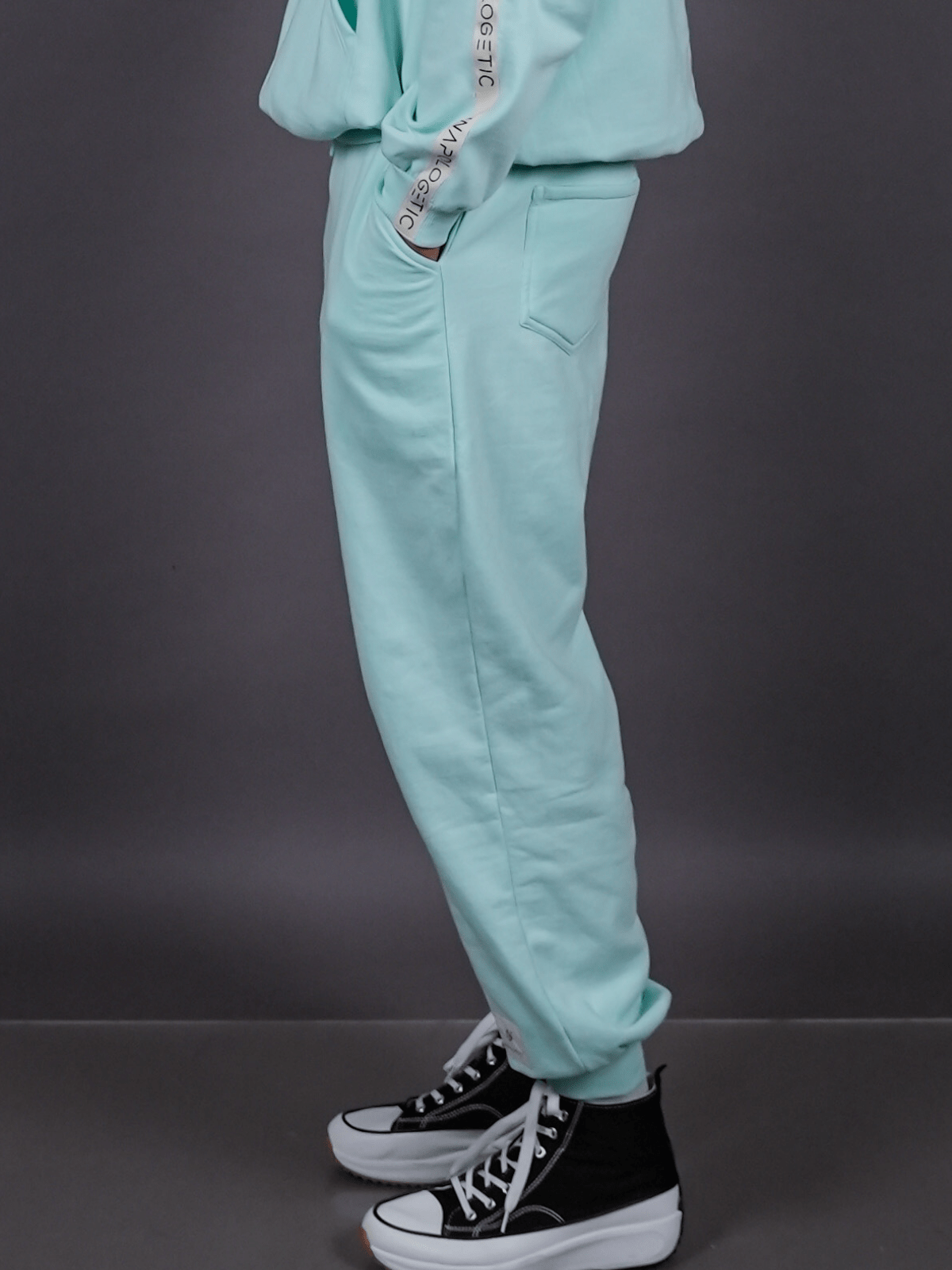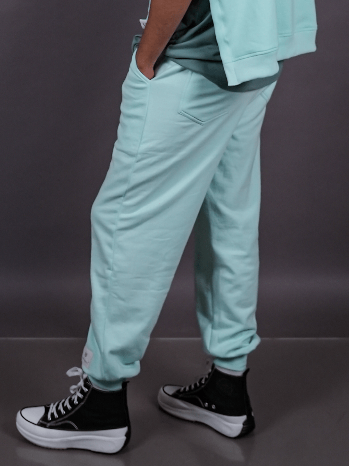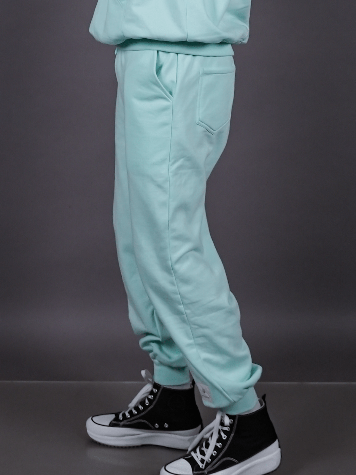 – Constructed with ribbed ankle cuffs that maintain a clean, defined structure at the hem.