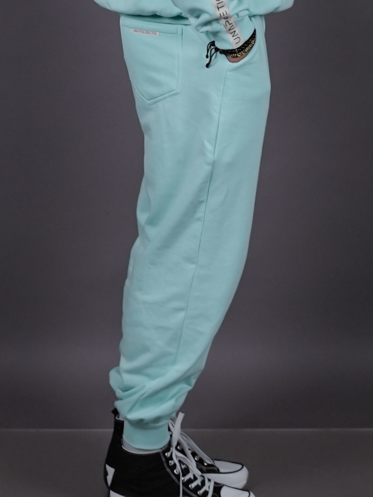 – Features an additional ‘Unapologetic’ canvas tag placed on the bottom left leg.