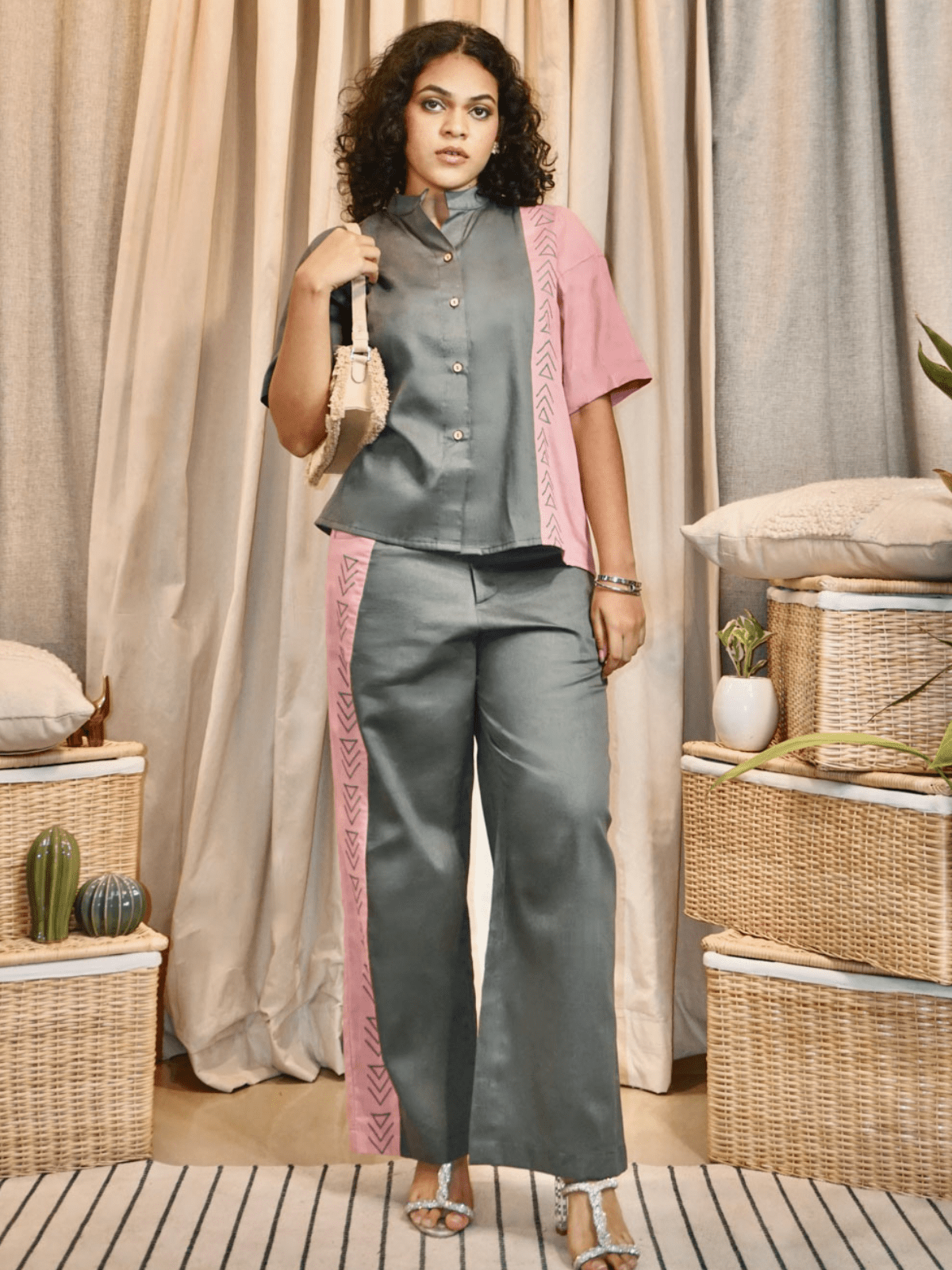 Cotton slub fabric wrinkles easily as it is organic and may require light ironing or steaming.