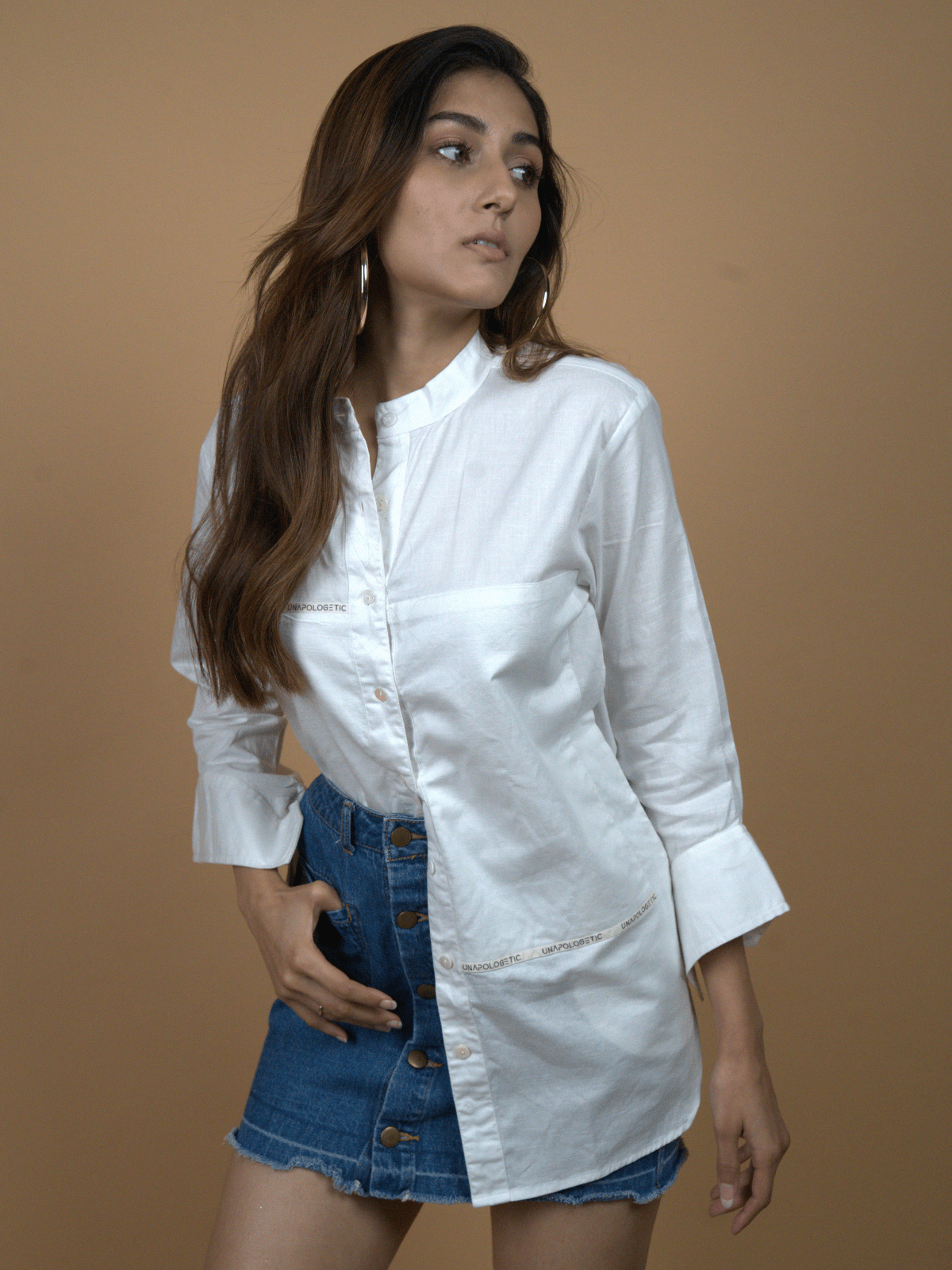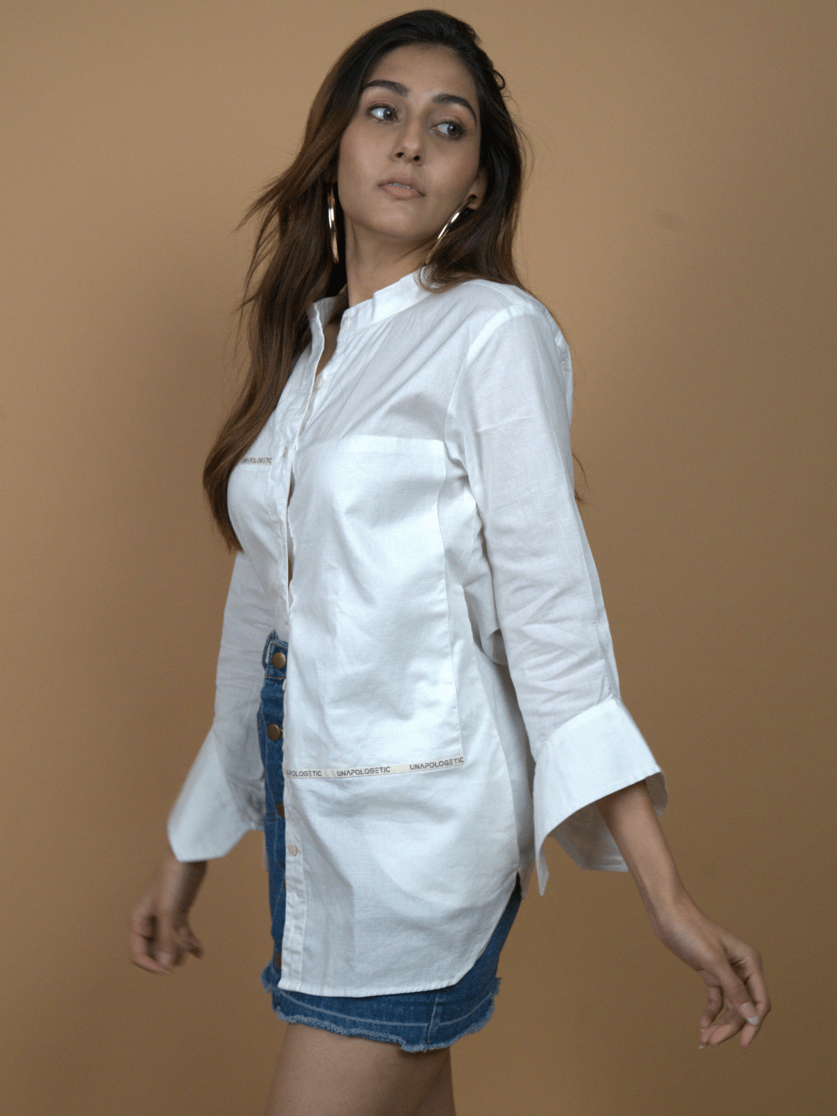 – A refined longline white shirt that strikes the perfect chord between comfort and quiet confidence.