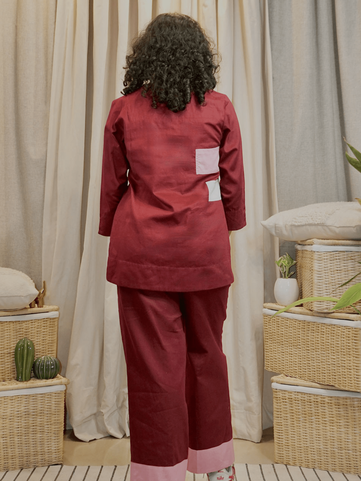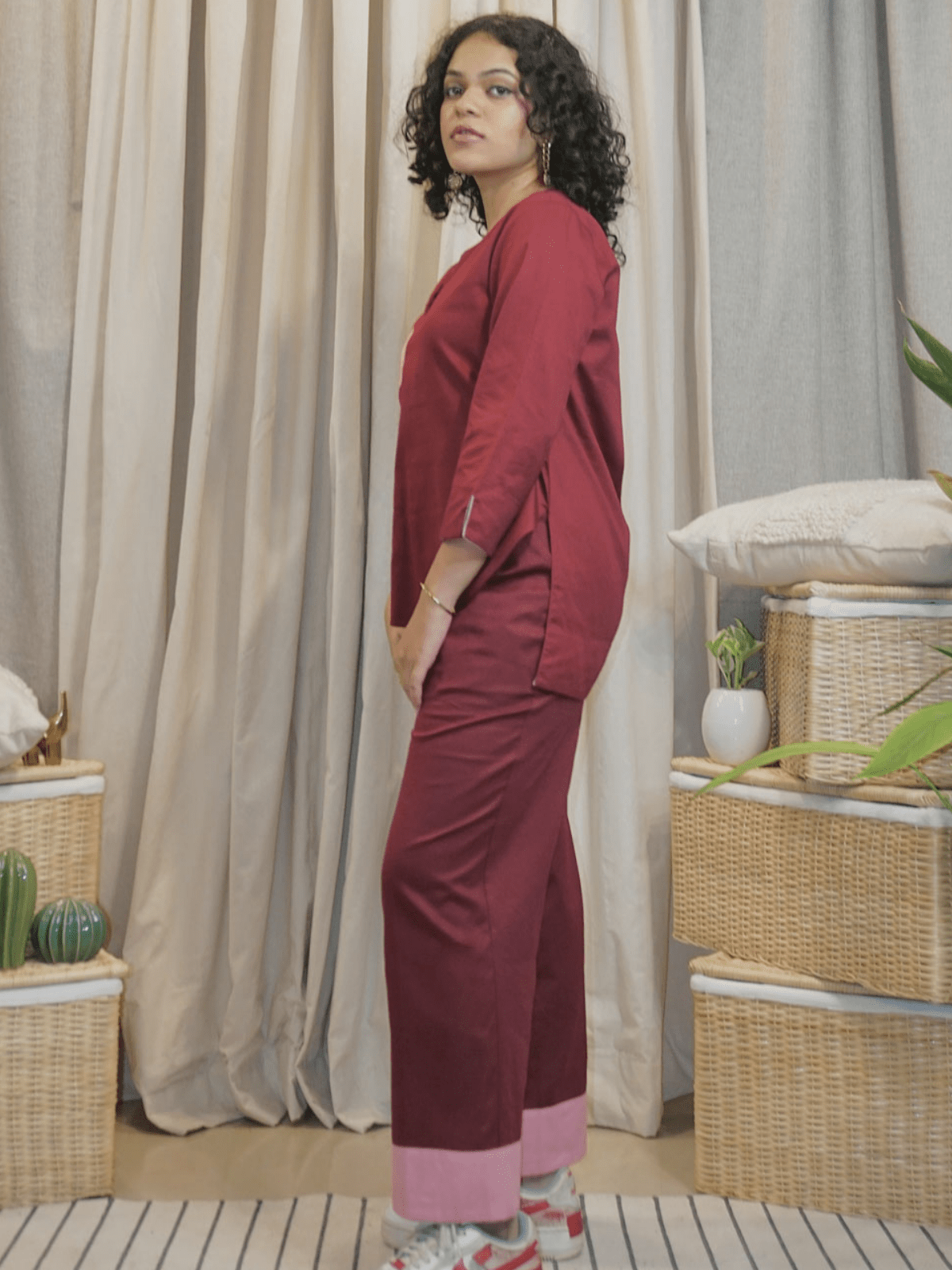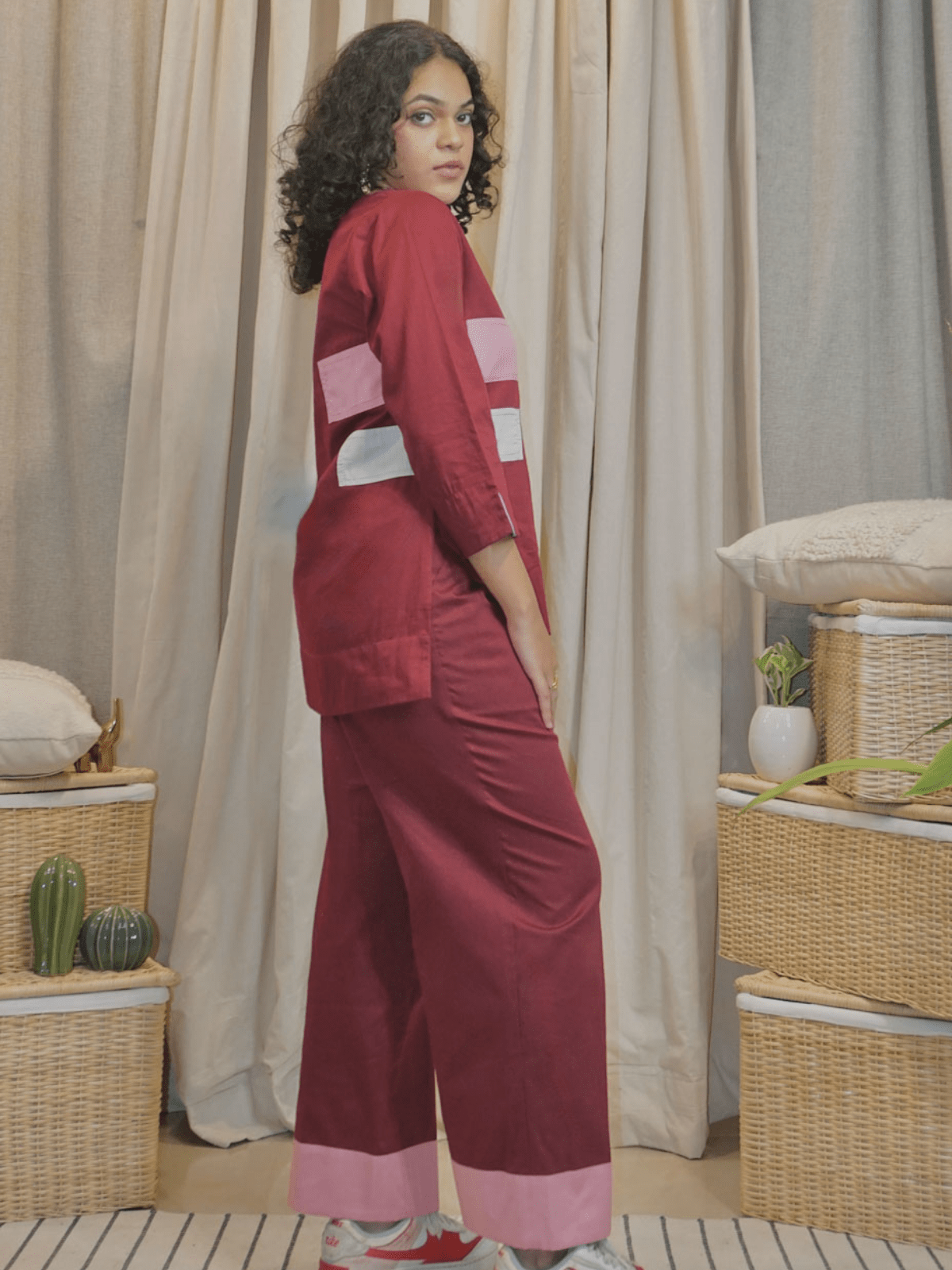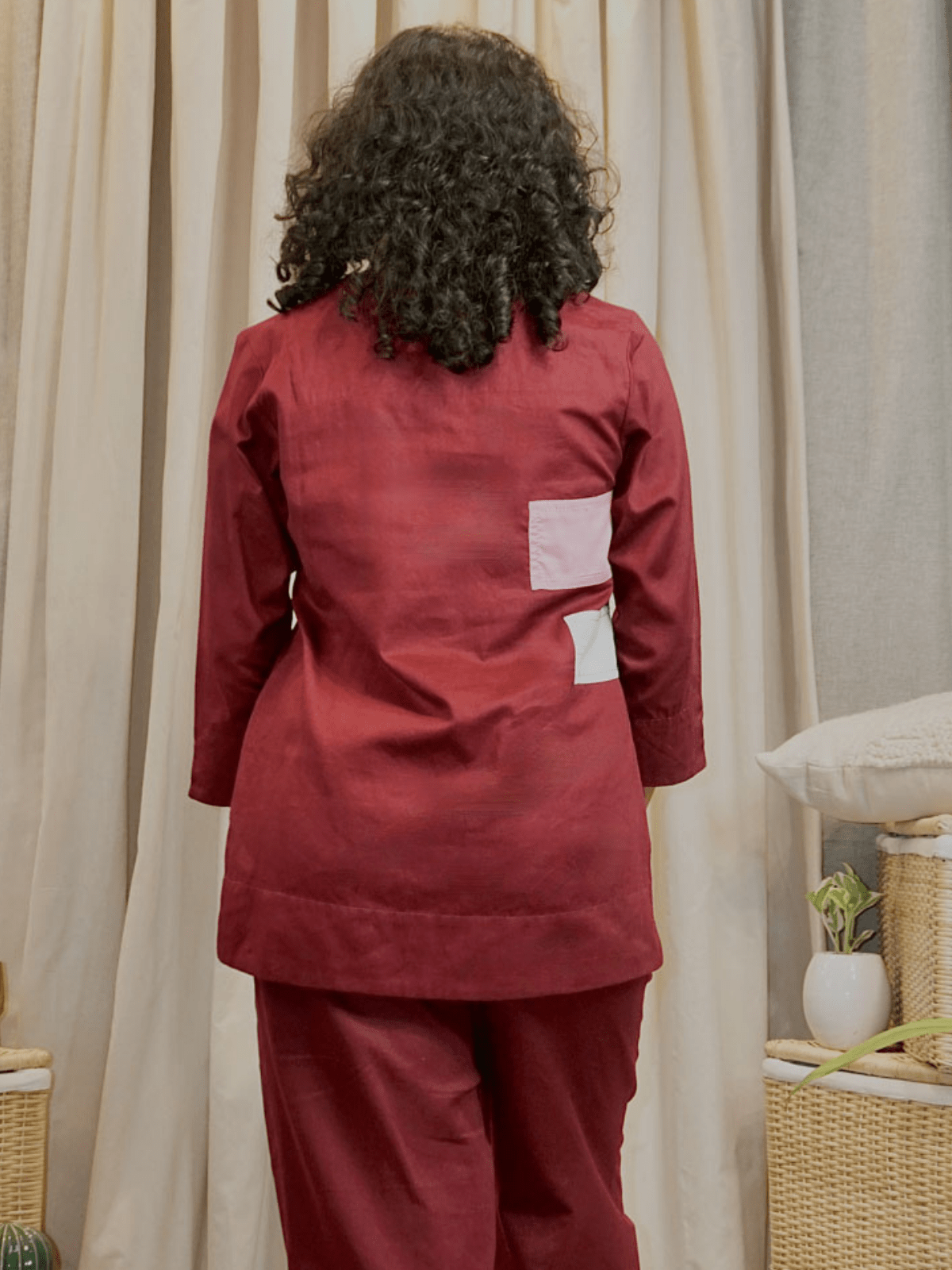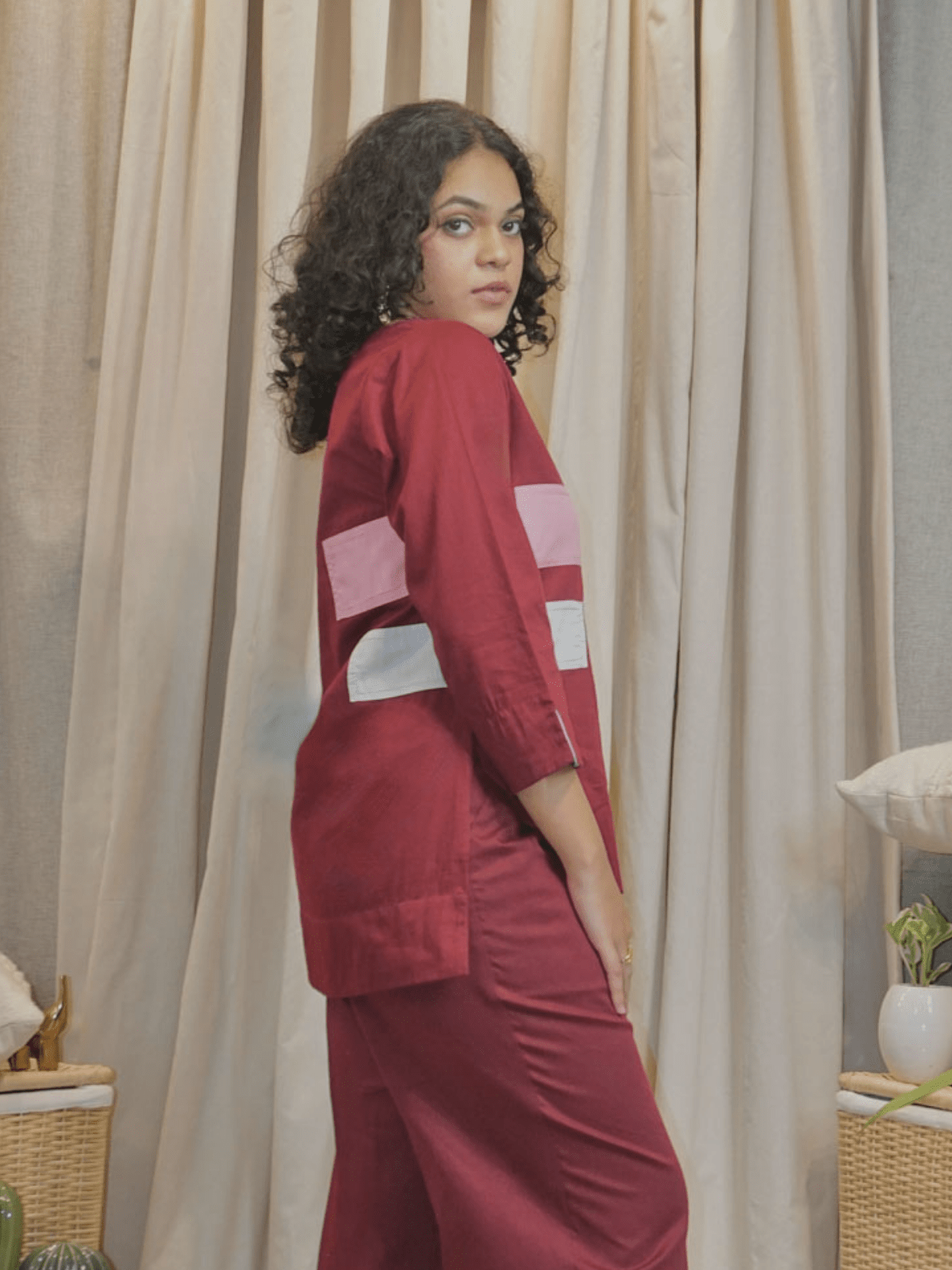 Cotton slub fabric wrinkles easily as it is organic and may require light ironing or steaming.