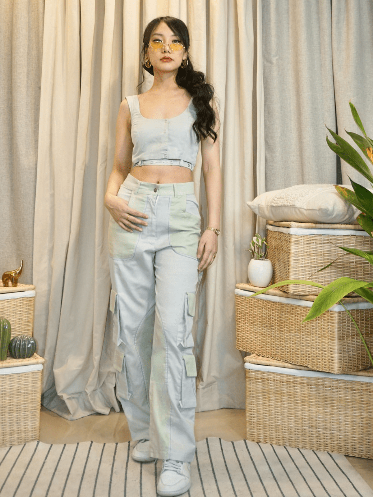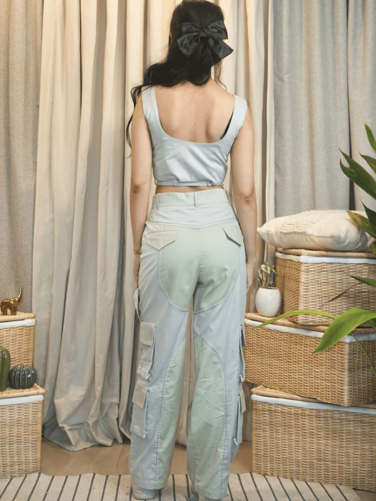 – Reversible crop top available in three distinct dual-tone color combinations.