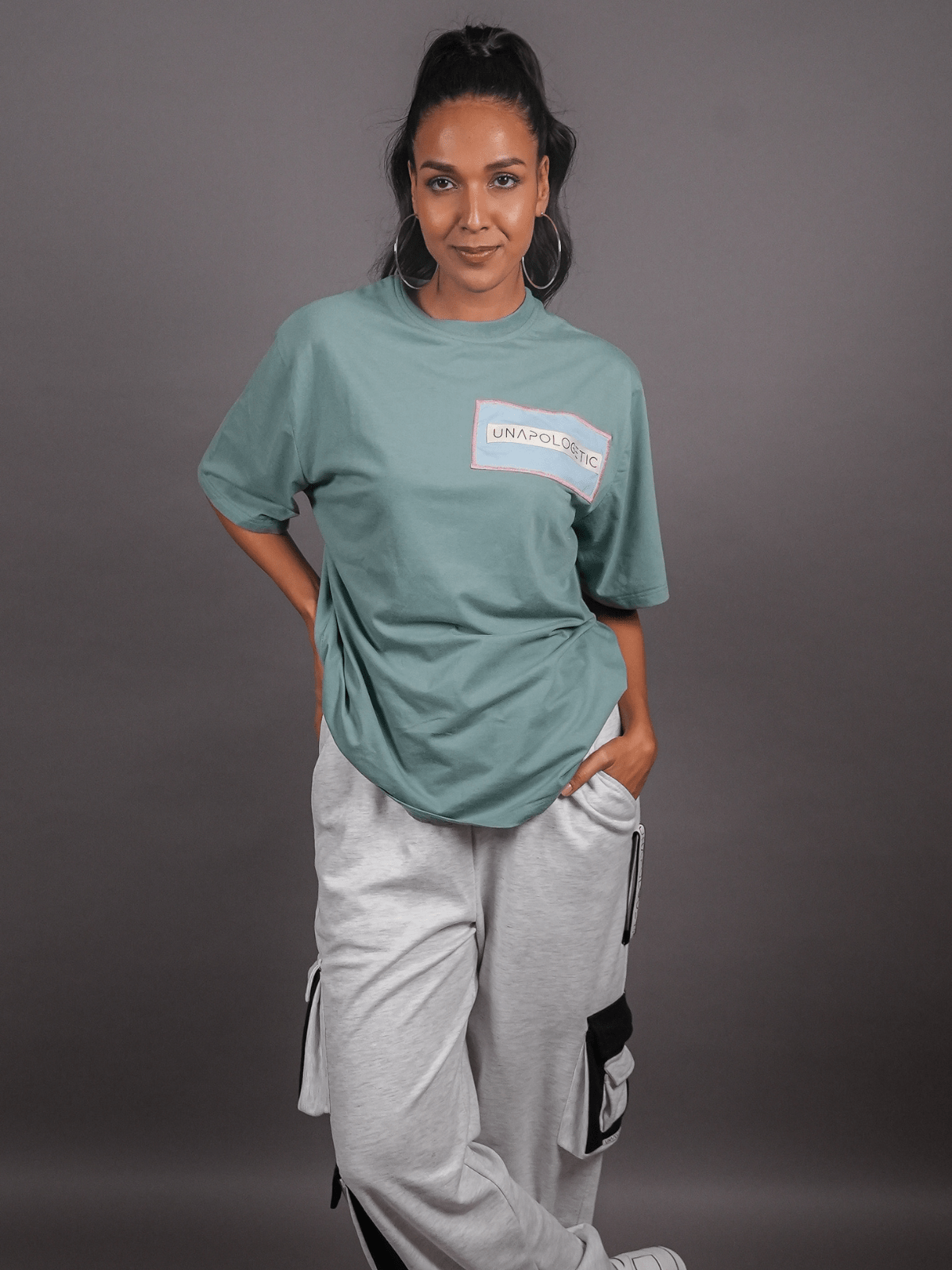 Design Detail:Minimal front with a bold “Hello, I’m Unapologetic” name tag-style graphic, Emphasizes identity, presence, and confidence