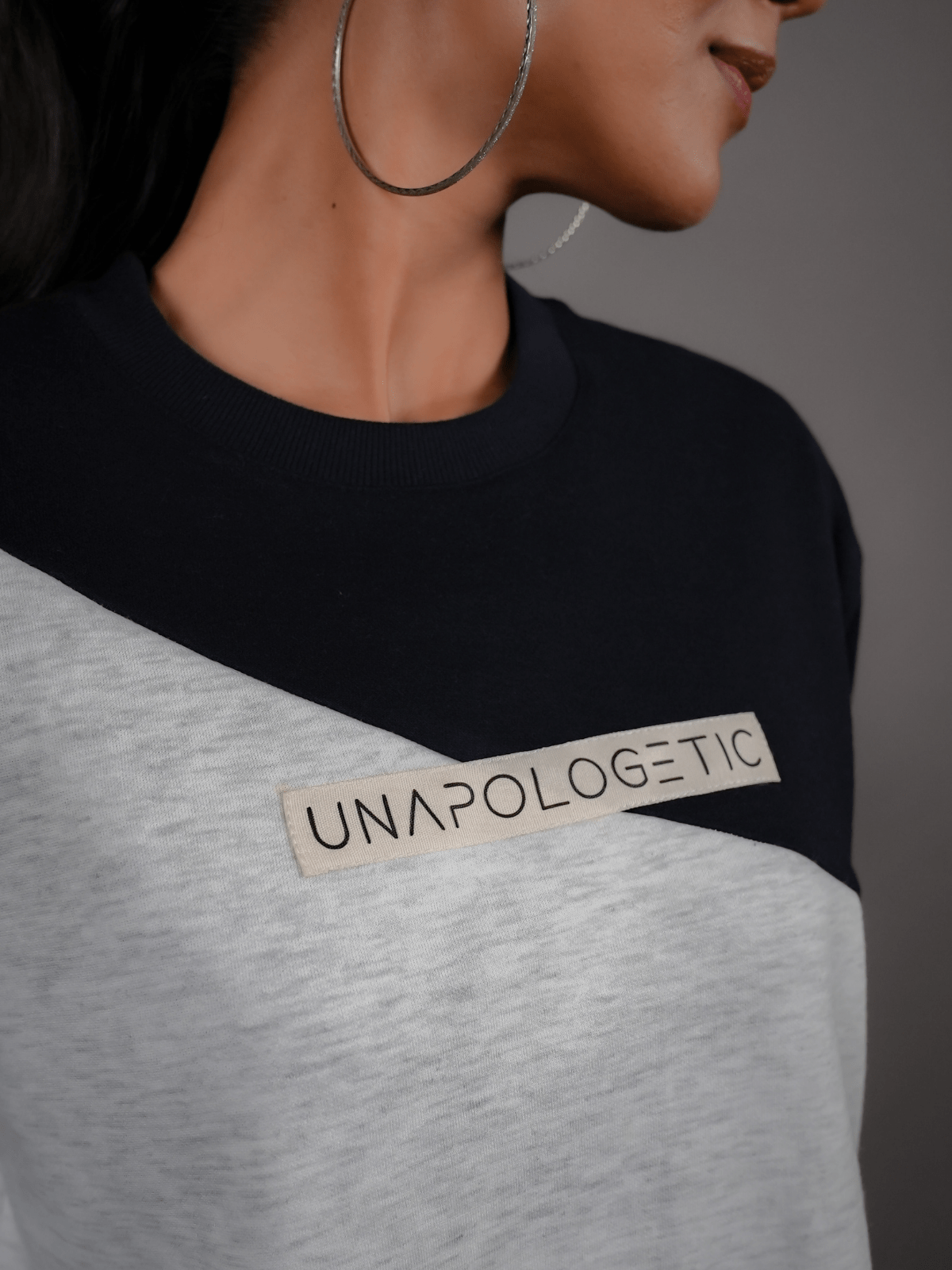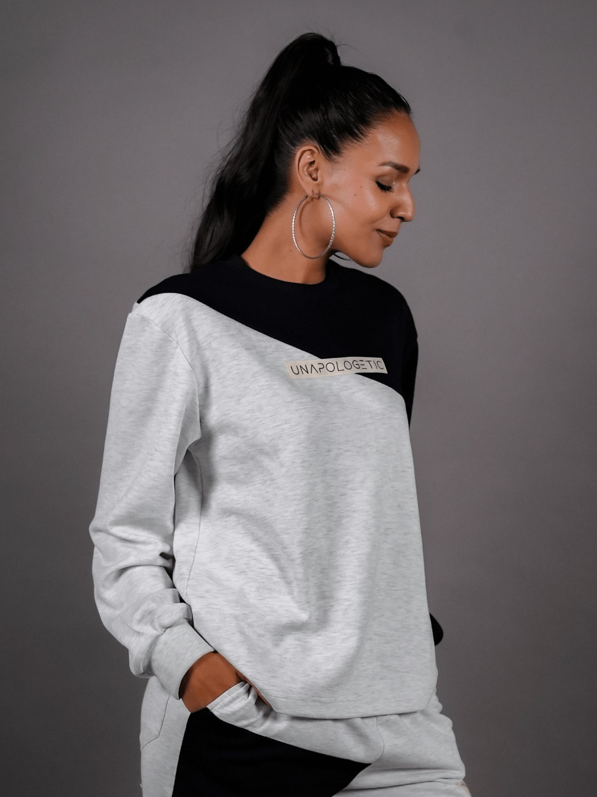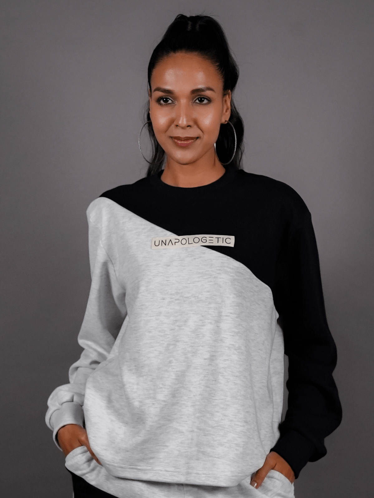 A sweatshirt made from soft fleece, featuring a diagonal patchwork design and minimal Unapologetic logo Relaxed Fit