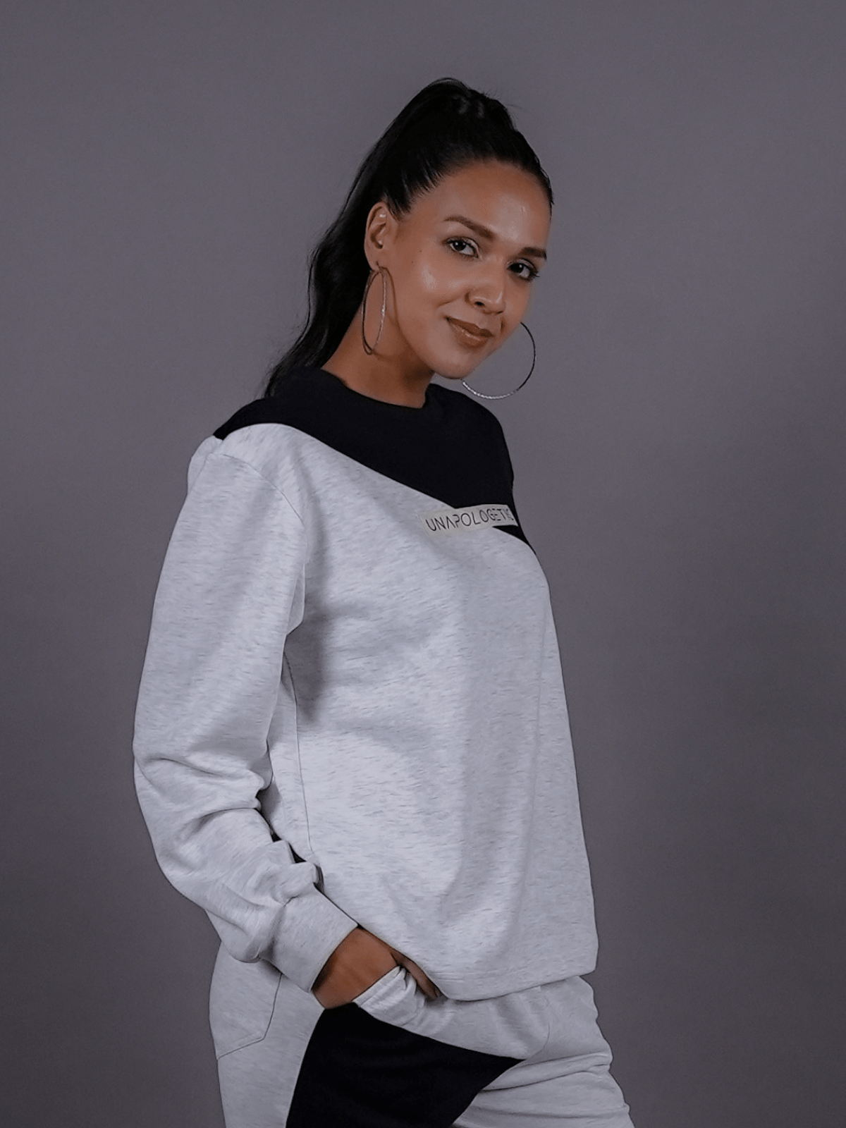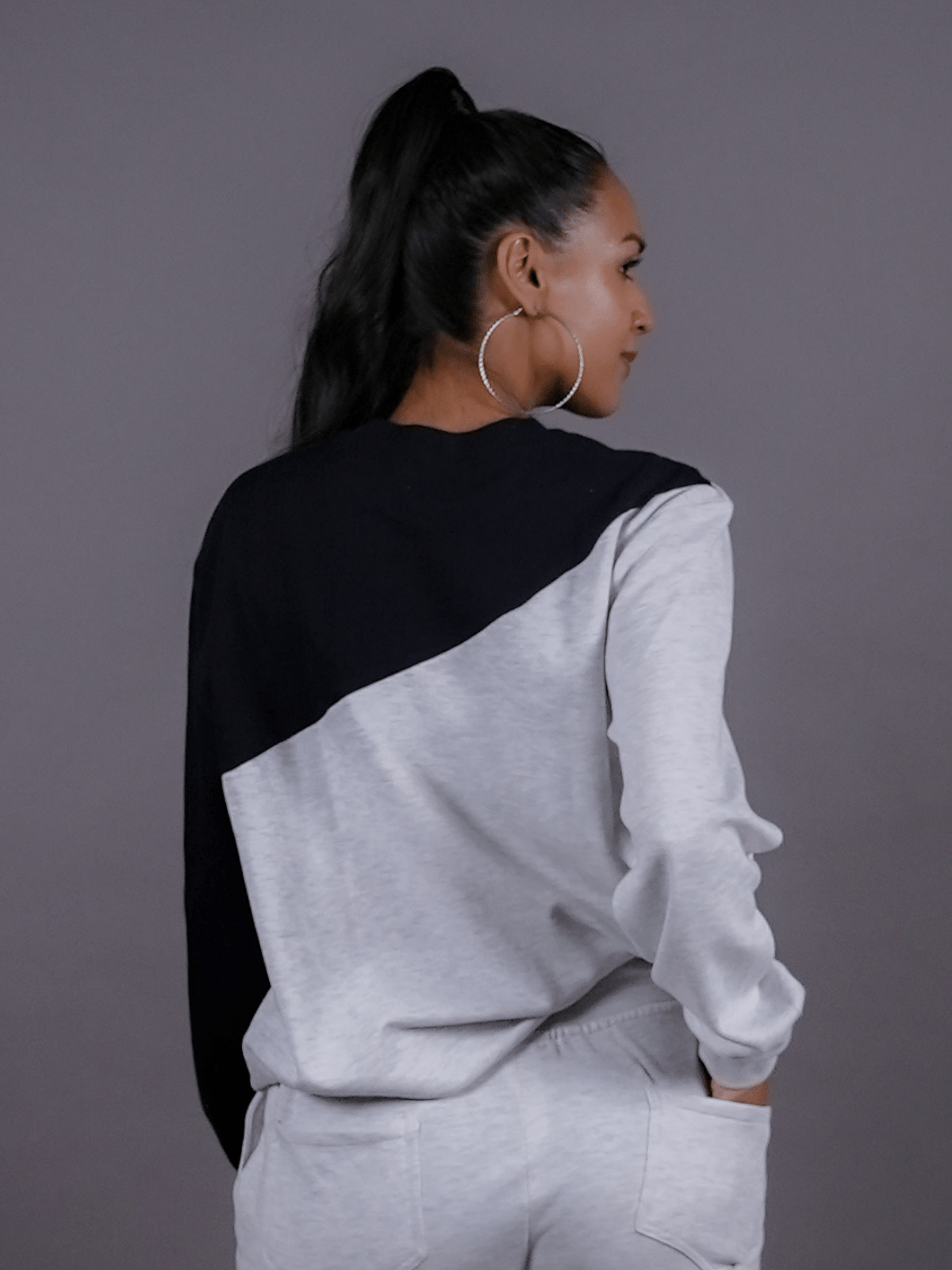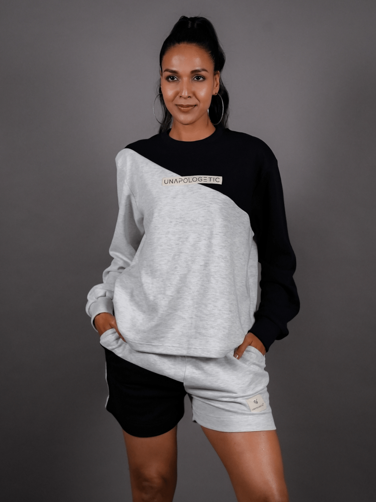 A sweatshirt made from soft fleece, featuring a diagonal patchwork design and minimal Unapologetic logo Relaxed Fit
