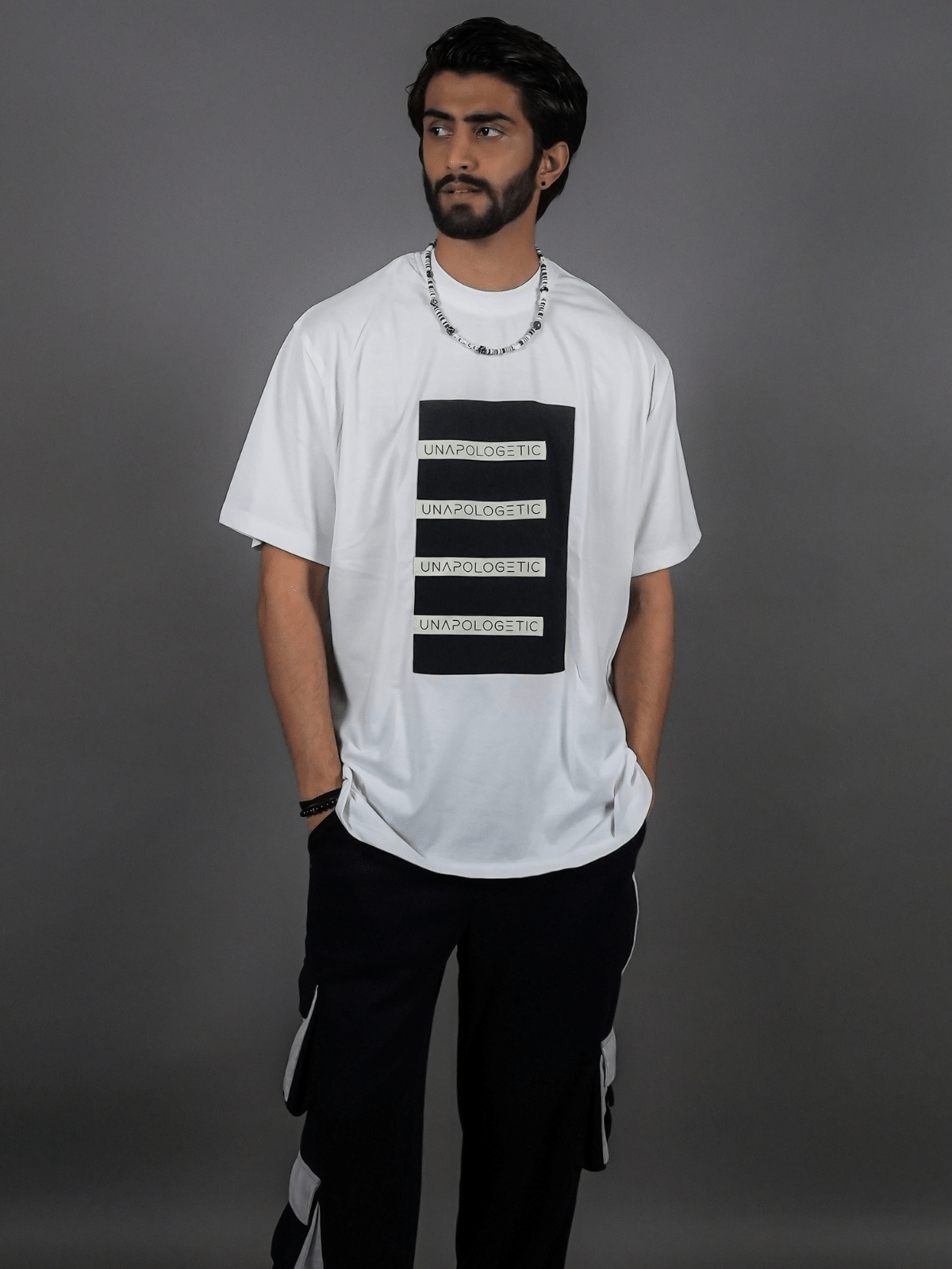 – The chest patch is detailed with four distinct ‘Unapologetic’ canvas tags.