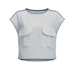 An umbrella top with patchworks of tints and tones joined through flat piping. Flowy Fit -